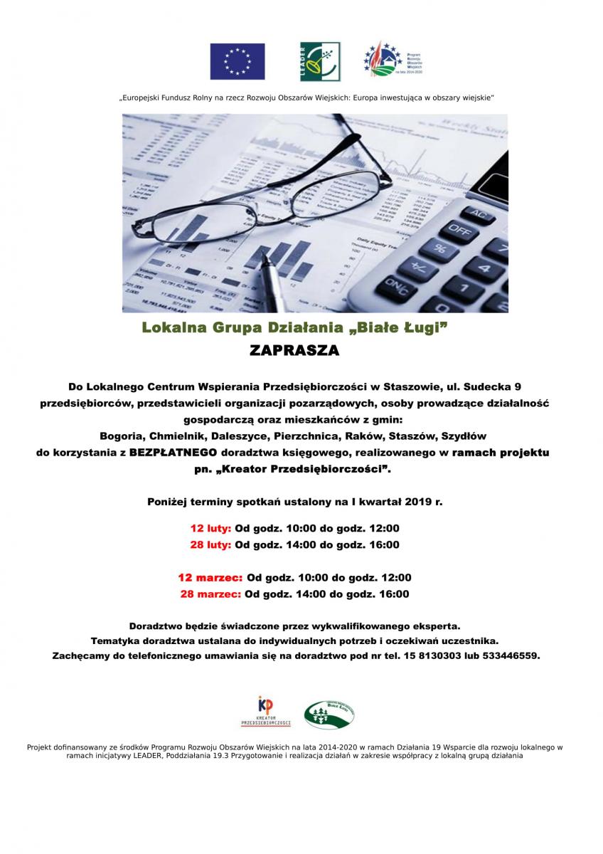 Doradztwo prowadzone jest w ramach projektu pn. "Kreator Przedsiębiorczości".
