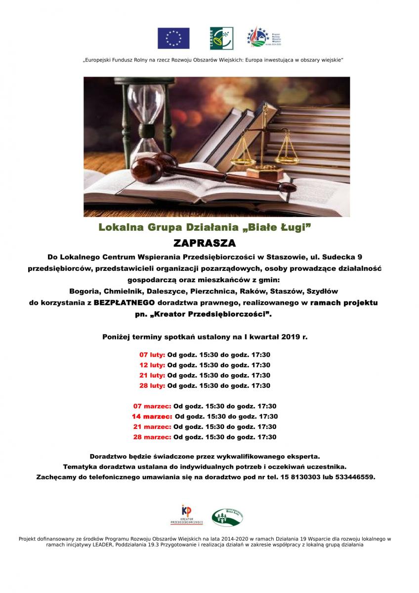 ZAPRASZAMY przedsiębiorców, przedstawicieli organizacji pozarządowych oraz osoby fizyczne do korzystania z BEZPŁATNEGO doradztwa dotyczącego prowadzenia działalności gospodarczej i działalności organizacji pozarządowych.