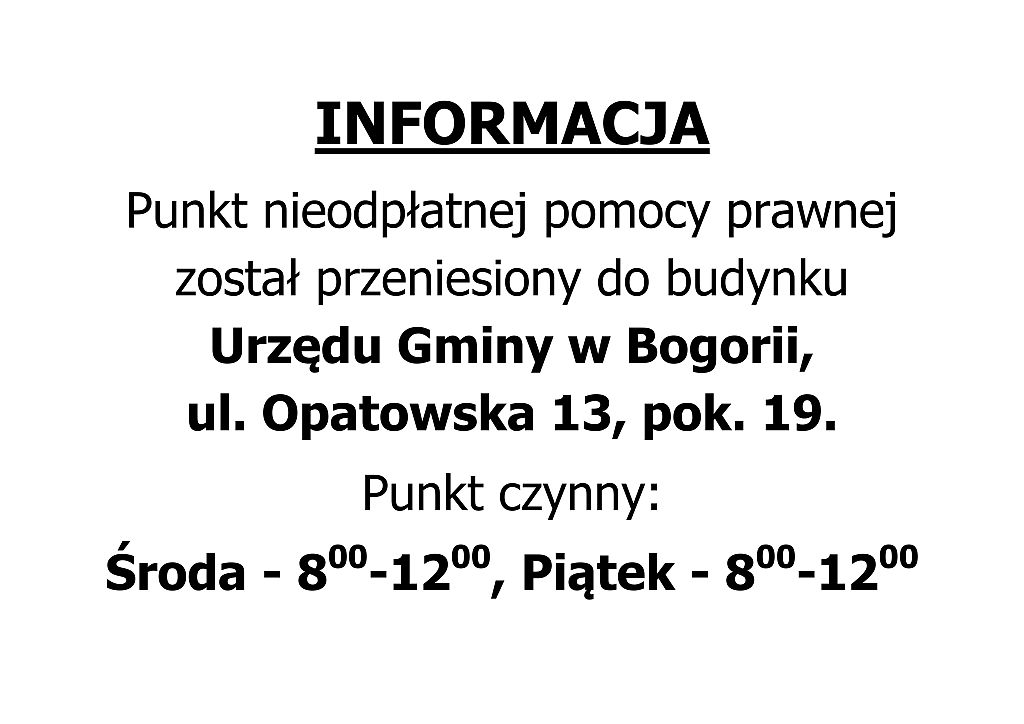 Zmiana lokalizacji punktu nieodpłatnej pomocy prawnej od 17 stycznia 2020 r.