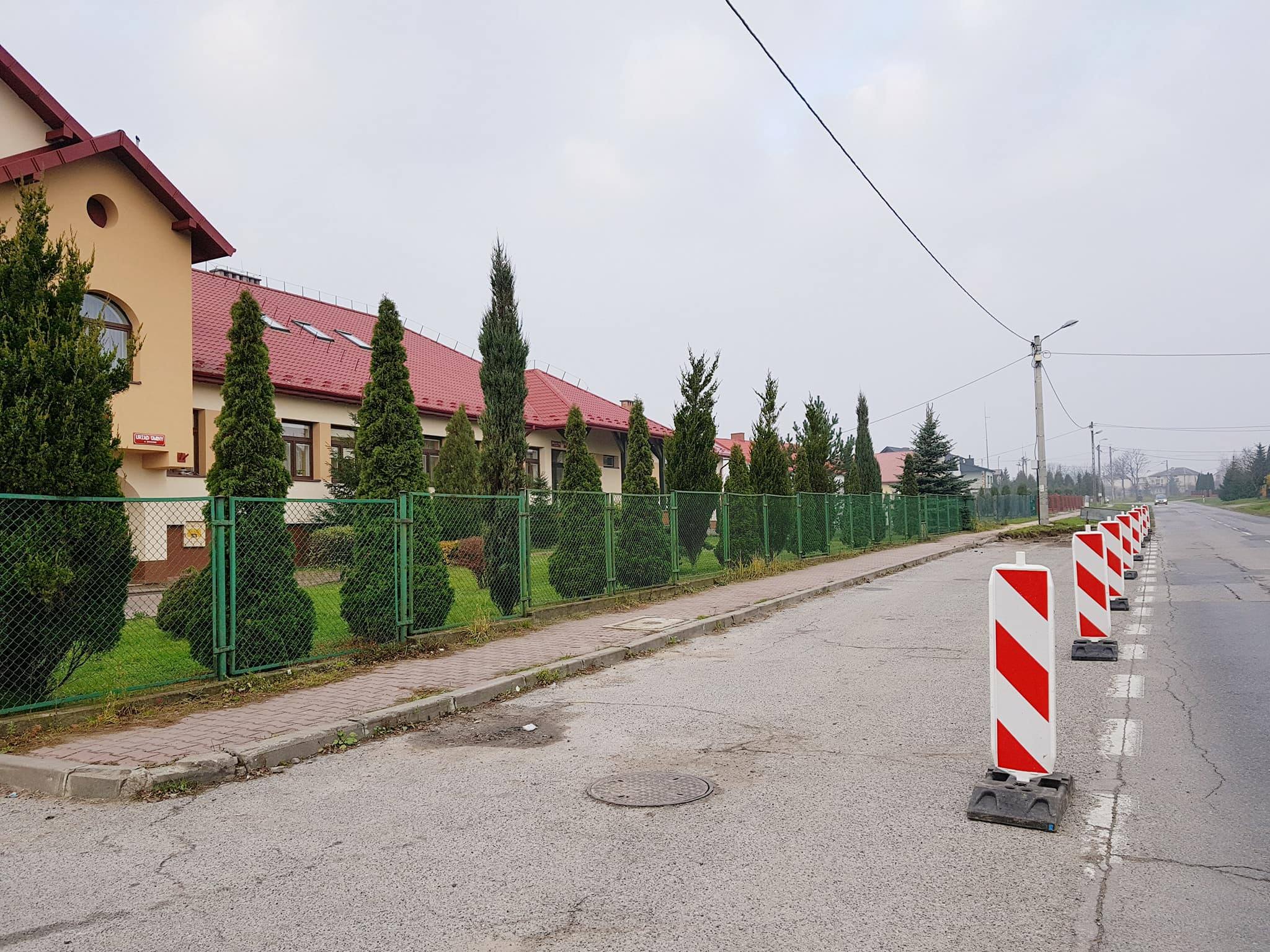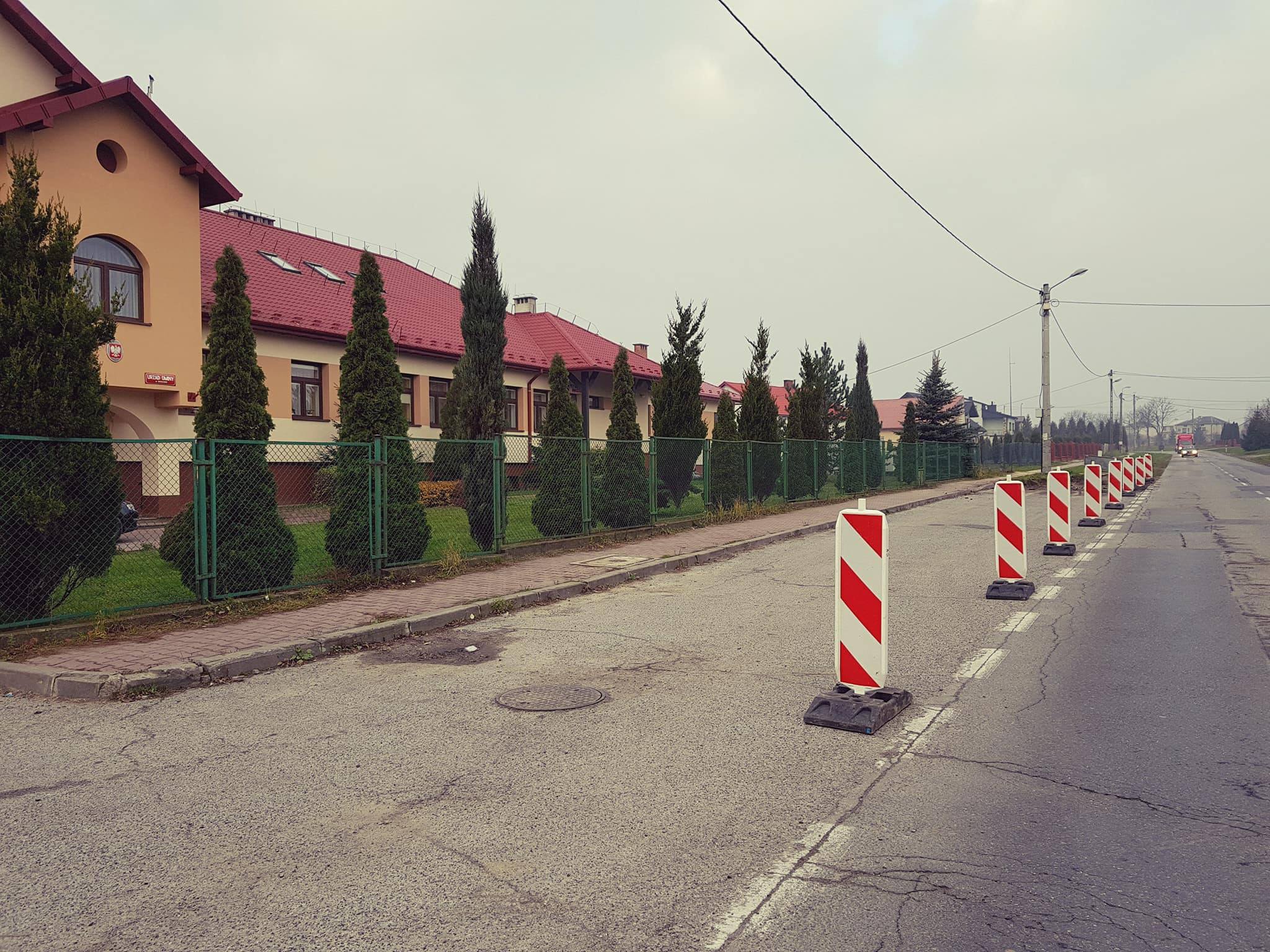 Na terenie położonym pomiędzy drogą wojewódzką a budynkiem Urzędu Gminy powstanie: zmodernizowany chodnik od strony drogi wojewódzkiej, 18 miejsc do parkowania pod kątem 45 stopni wraz z drogą manewrową do miejsc postojowych.