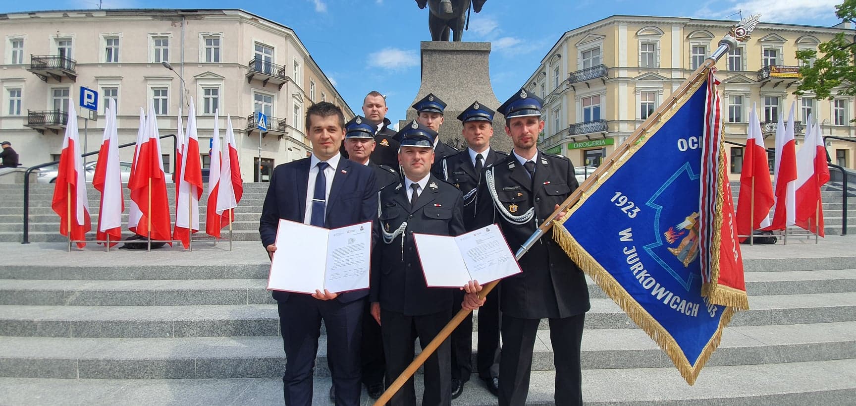 11 maja odbyły się Wojewódzkie Obchody Dnia Strażaka w Kielcach. Gminę Bogoria reprezentowali strażacy z Ochotniczej Straży Pożarnej w Jurkowicach. Podczas uroczystości Wójt Gminy Bogoria Marcin Adamczyk oraz Naczelnik OSP Jurkowice Druh Rafał Rogala odebrali z rąk Pani Premier Beaty Szydło promesę na zakup samochodu ratowniczo-gaśniczego dla jednostki. Dziękujemy Ministrom Spraw Wewnętrznych i Środowiska, Komendantowi Głównemu Państwowej Straży Pożarnej, parlamentarzystom i wszystkim, którzy poparli Nasze starania o pozyskanie tych funduszy. Dzięki nim wymarzony przez druhów z Jurkowic wóz bojowy zostanie im przekazany i będzie służył do ratowania życia i mienia ludzkiego.