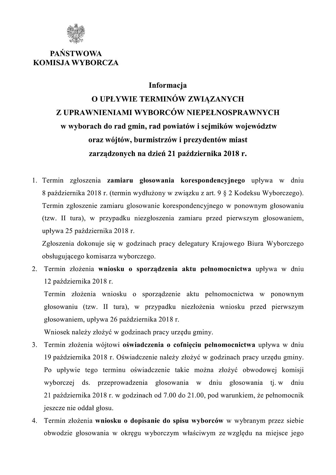 Informacja o upływie terminów związanych z uprawnieniami wyborców niepełnosprawnych - Wybory 2018